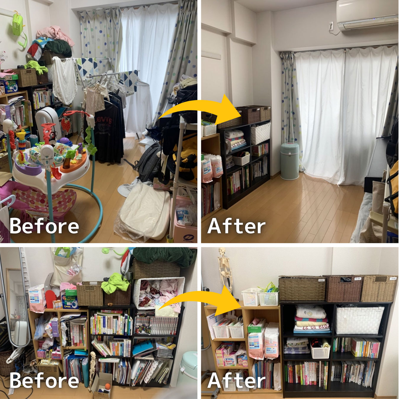片付けがもともと苦手だった方や、モノが捨てられないタイプの方は片付けを習慣化するのは大変なことですが、一度しっかり片付ければ、少し乱れてもカンタンにリセットすることが可能です。自信のない方は、アフターフォローや定期訪問もできますので安心してご相談ください。